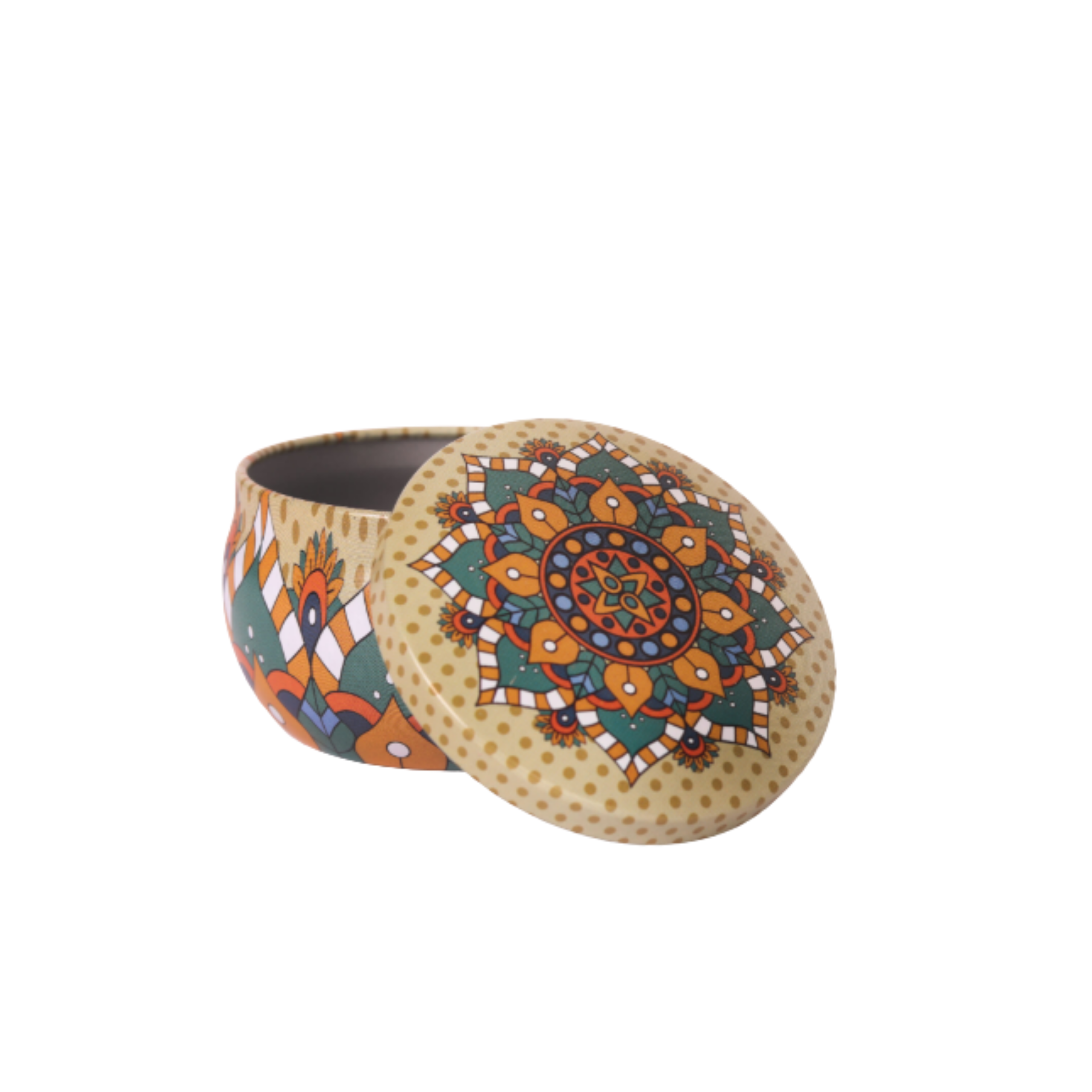 علبة صفيح صغيرة باللون البيج المتعدد الألوان، سعة 50 مل، مقاس 3.8 × 6.2 سم.