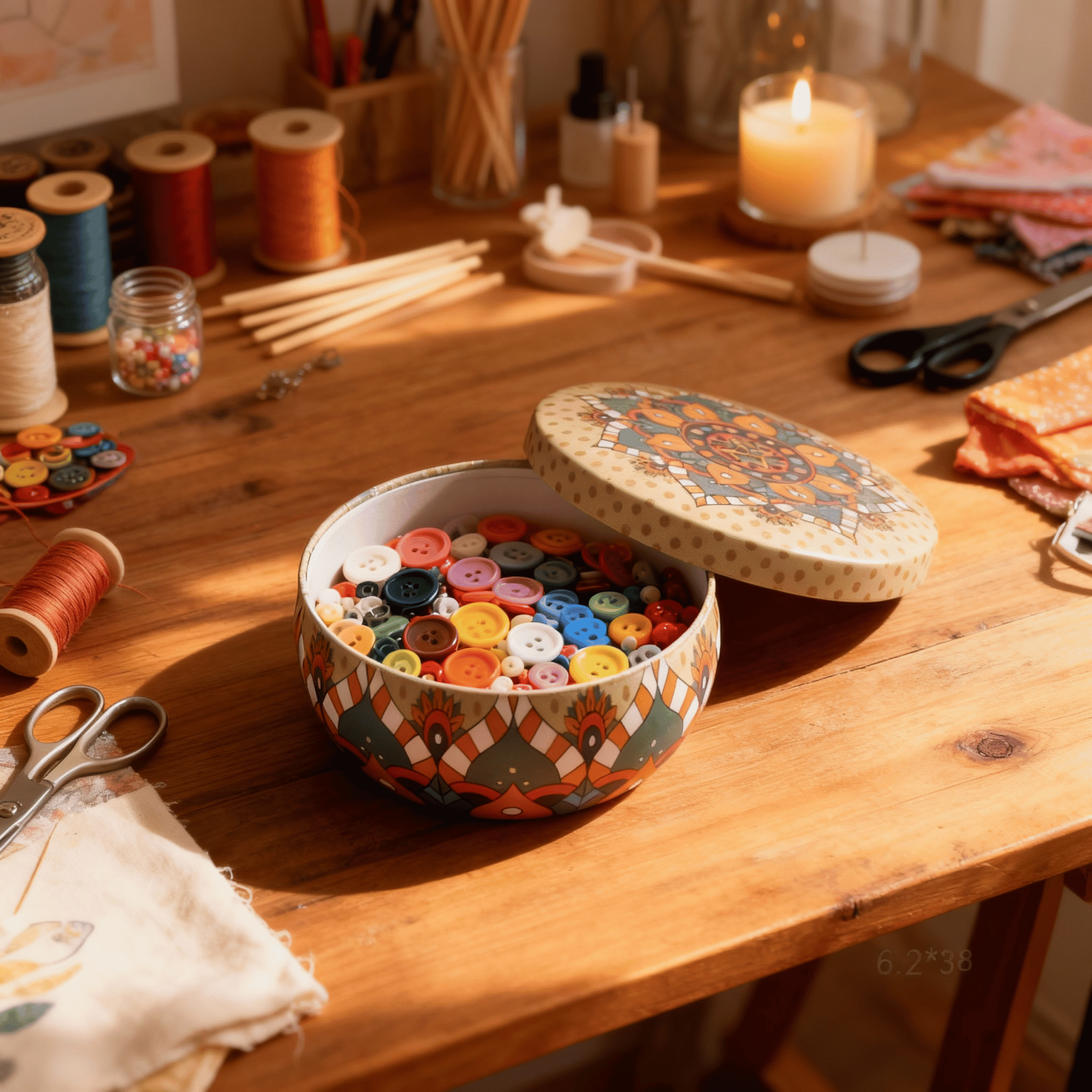 علبة صفيح صغيرة بتصميم أحمر مع برتقالي متعدّد الألوان، سعة 50 مل، مقاس 3.8 × 6.2 سم.