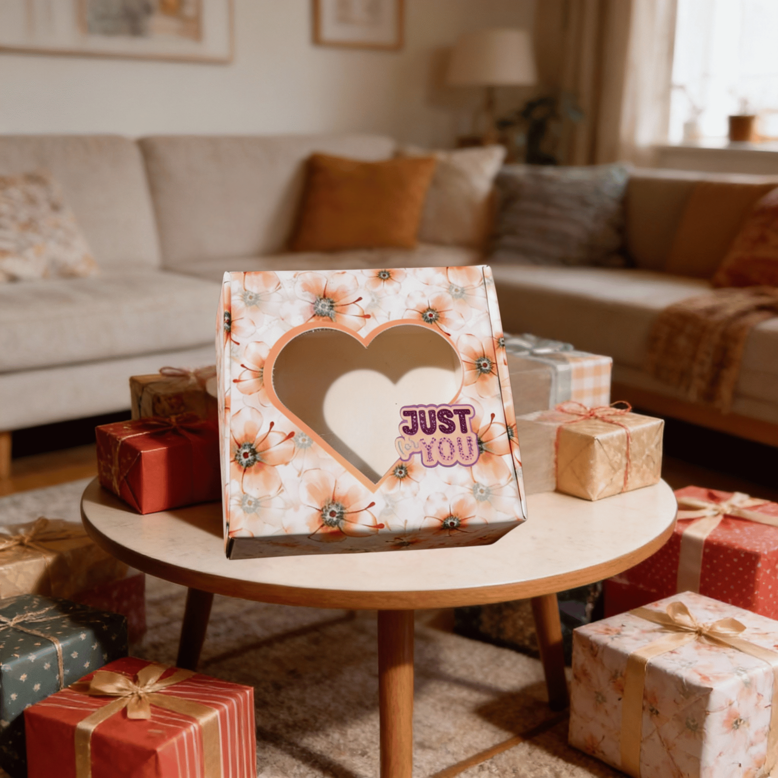 هذا Orange Gift Box with Heart Window “Just for You” is a stylish and decorative packaging solution designed to elevate your gift presentation. Made from high-quality cardboard, this premium gift box features a transparent heart-shaped window that beautifully showcases the item inside, adding a personal and elegant touch.