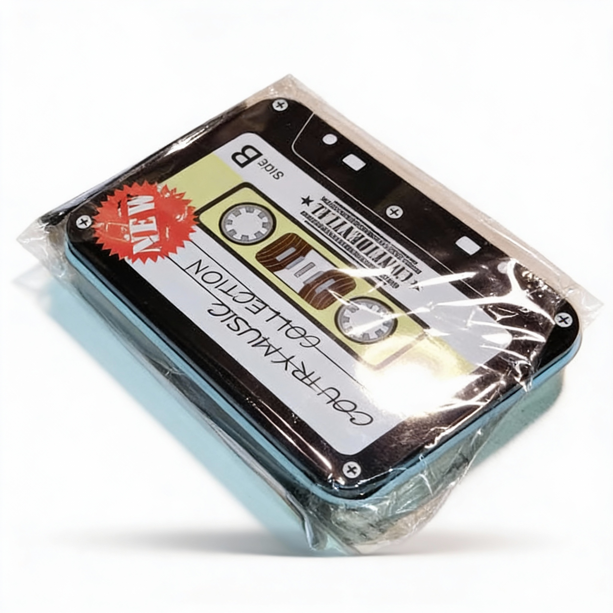 هذا silver metal tinplate storage container features a black decorative lid with a radio design, giving it a modern, retro, and eye-catching aesthetic. With a 100-gram capacity and compact dimensions of 2.5 × 6.5 × 9 cm, it is perfect for storing candles, wax, beads, jewelry, small crafts, or keepsakes.