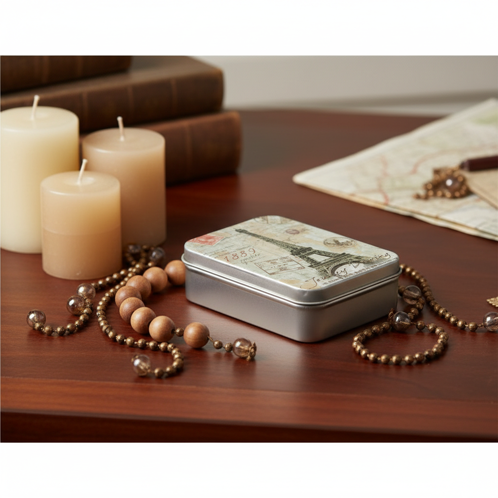 The silver tinplate base offers durability and a clean, modern look, while the Eiffel Tower lid design adds a charming, travel-inspired and vintage aesthetic. Perfect for home organization, gift packaging, souvenir storage, and decorative use, this tin blends functionality with style.
