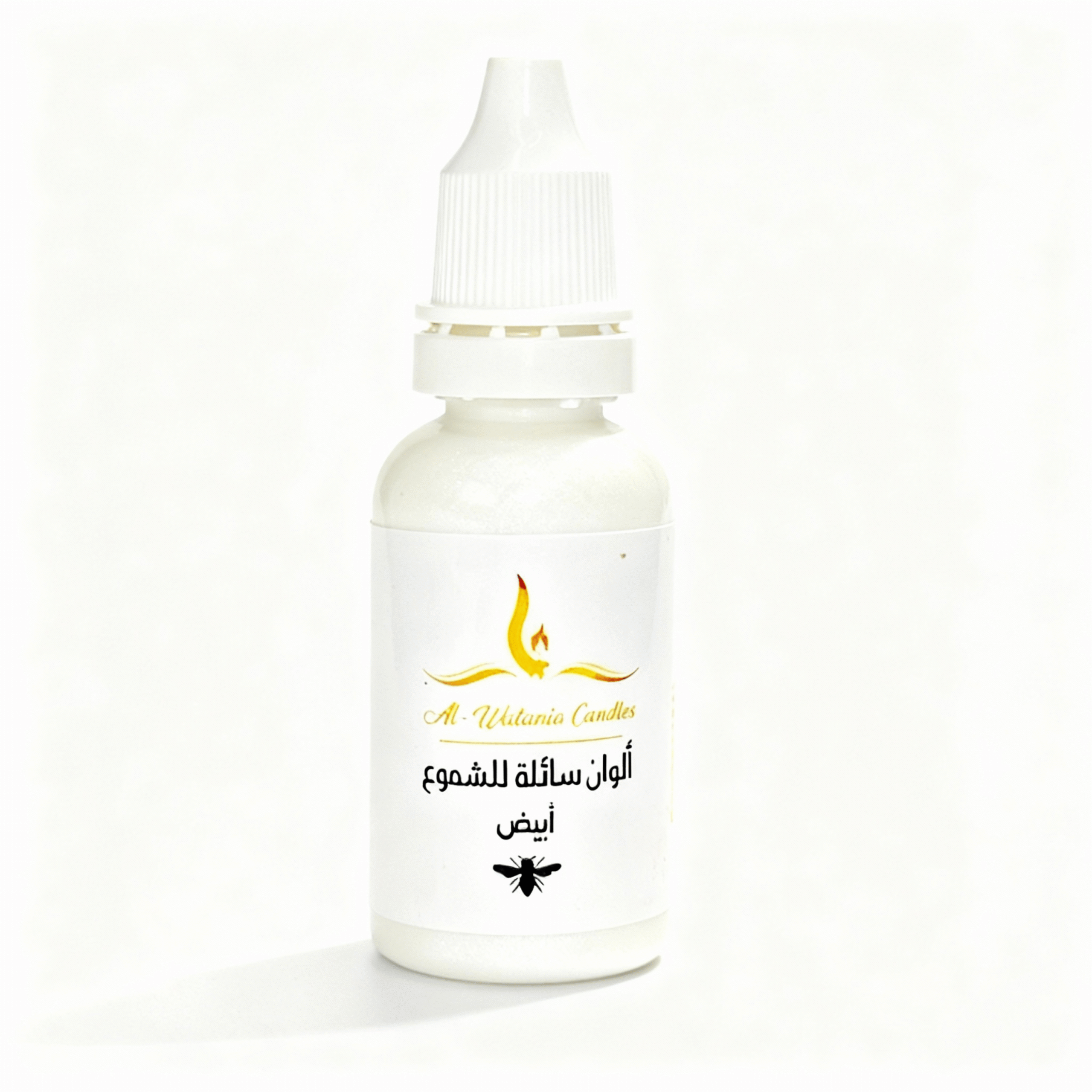 عالي التركيز صبغة شموع سائلة أبيض بحجم 15 جم لصناعة الشموع. سهلة المزج، ثابتة مع الحرارة، ومثالية للحصول على لون زاهي ومتجانس بجودة احترافية مع جميع أنواع الشمع.